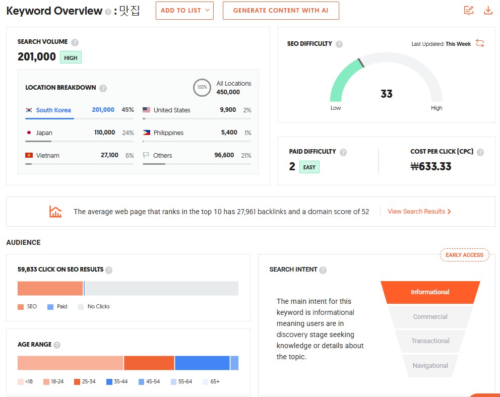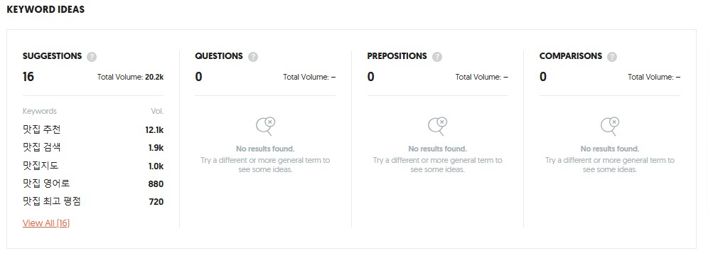 - 활용: 예를 들어, "맛집 추천"이라는 키워드를 입력하면 지역별, 인기 순위별 추천 검색어를 확인할 수 있어, 지역 기반 블로그나 음식 리뷰 콘텐츠 제작에 매우 유용합니다.