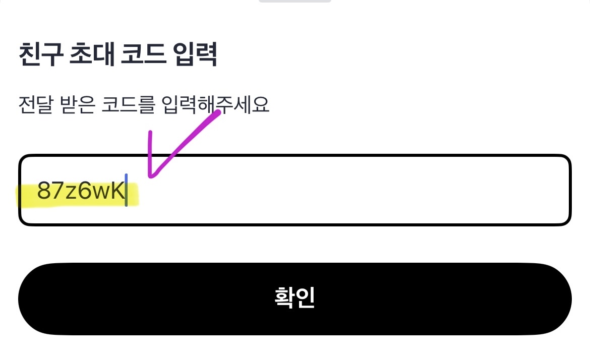 아래 친구초대 코드가 있으신가요? 를 먼저 눌러주시고 코드를 넣어주셔야 포인트가 바로 적립된답니다😊