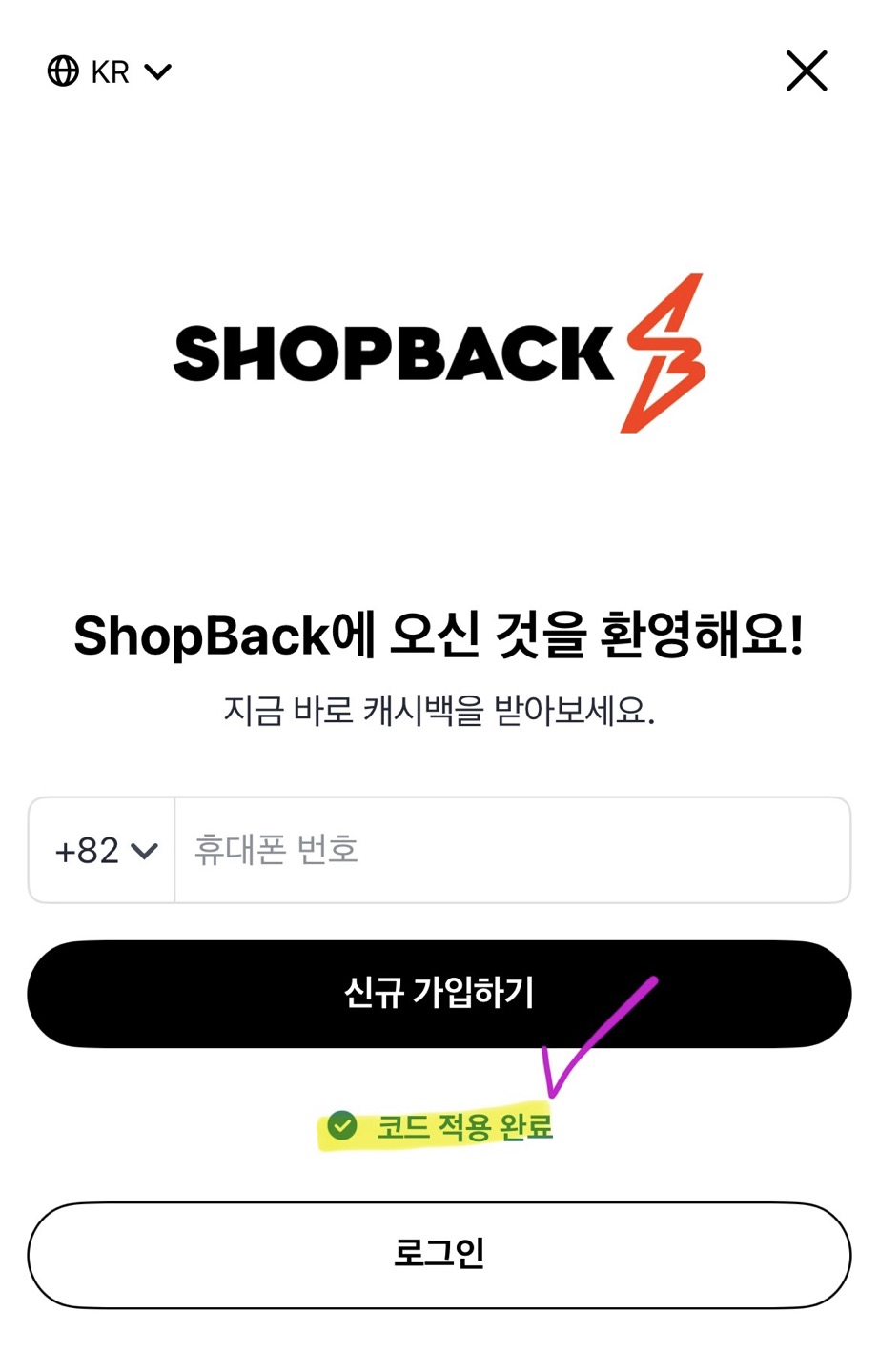 코드 적용 완료라고 뜨면 휴대폰 번호 입력하시고 신규 가입하기 누르시면 완료🥰