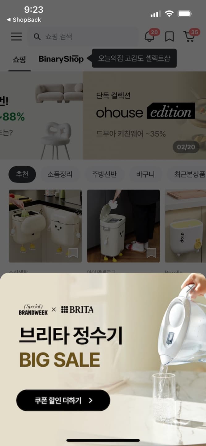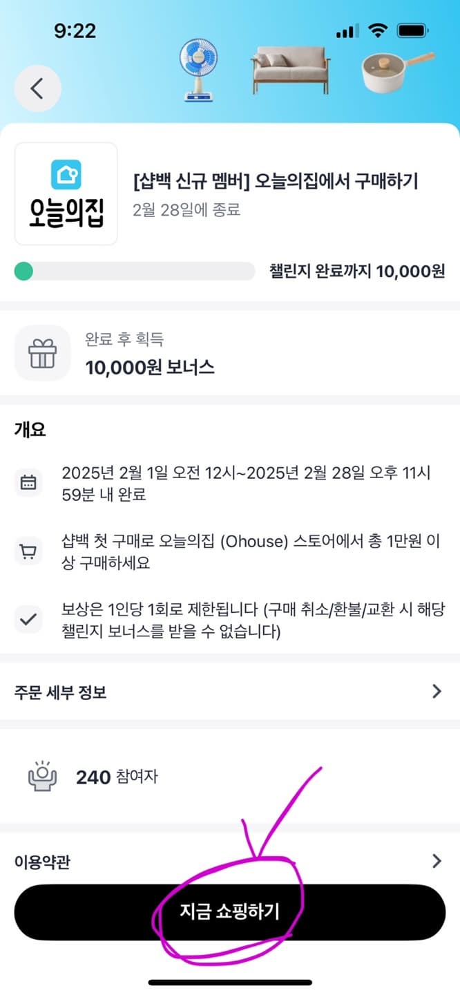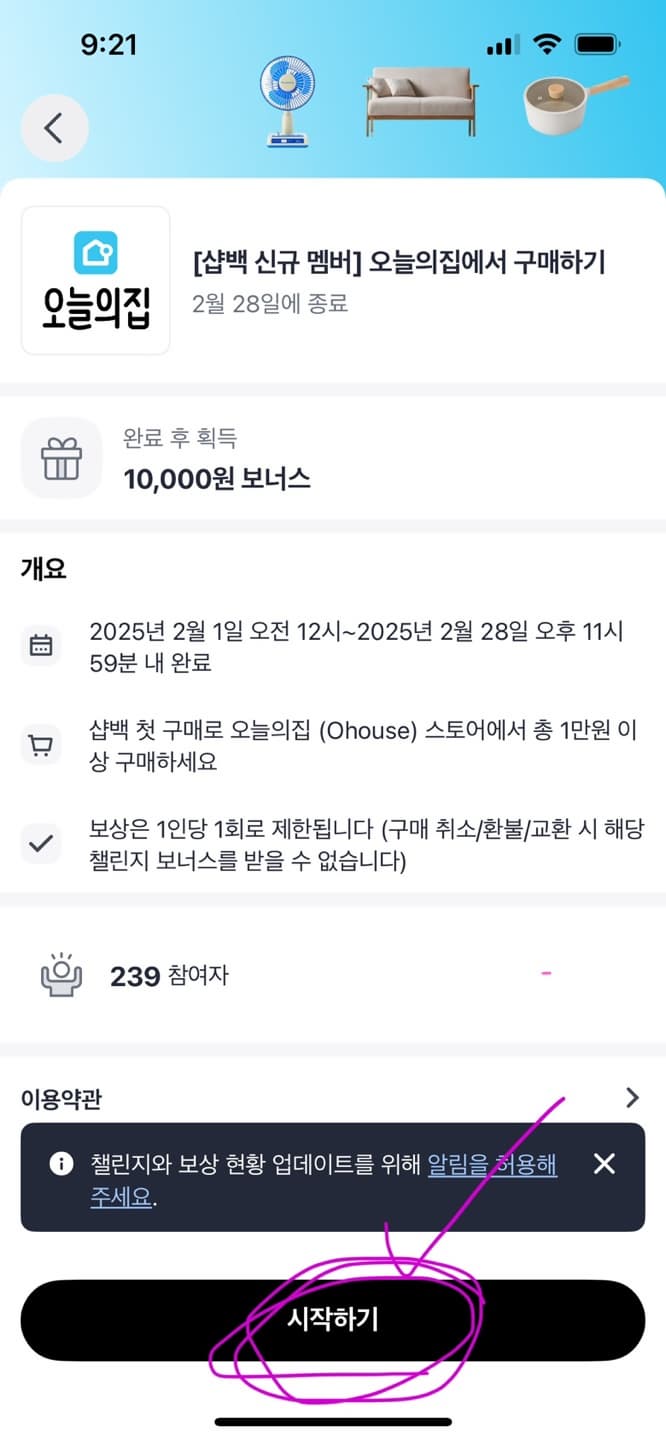 오늘의 집 옆에 떠있는 시작하기를 누른 후 !