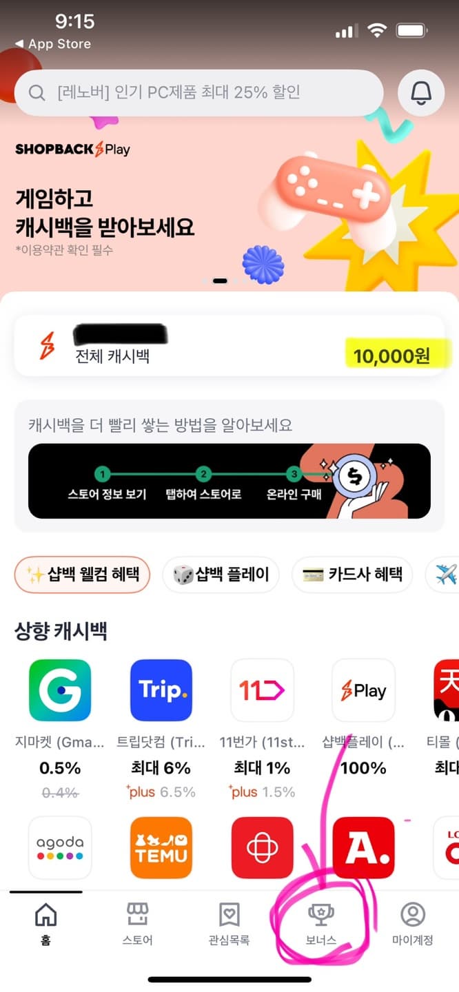 이 경로로 들어가주셔야만 위 화면처럼 캐시백이 활성화 돼요!